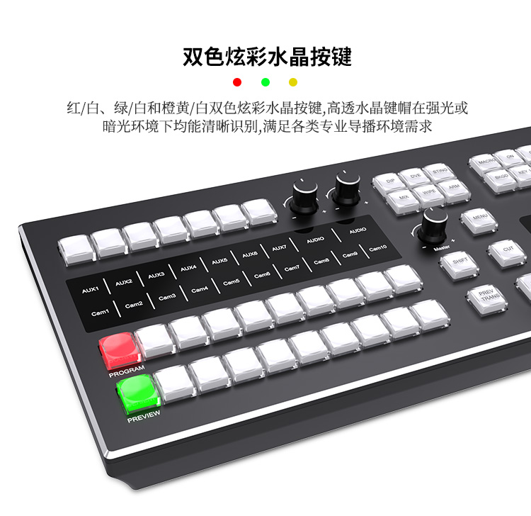 按鍵 | 紅、綠、橙黃三色水晶按鍵 |