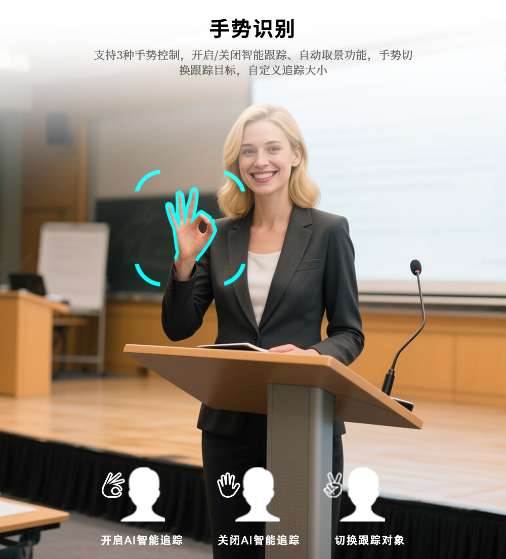 智能跟蹤 | 單人跟蹤,多人跟蹤,區(qū)域跟蹤,混合跟蹤,手勢識(shí)別 | |