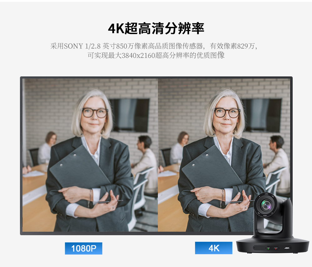 采用SONY 1/2.8 英寸850萬像素高品質圖像傳感器,有效像素829萬,可實現最大3840x2160超高分辨率的優質圖像