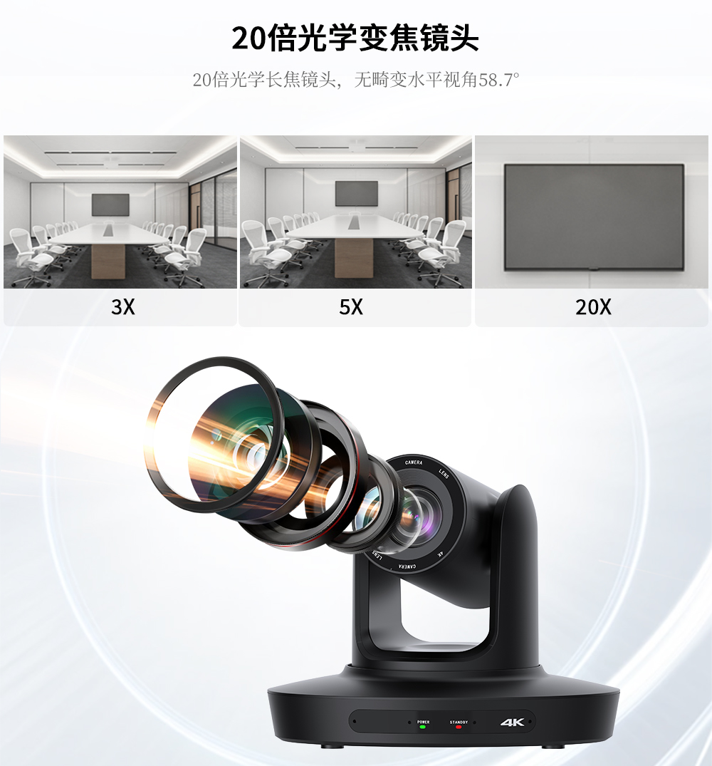 20倍光學長焦鏡頭,無畸變水平視角58.7°