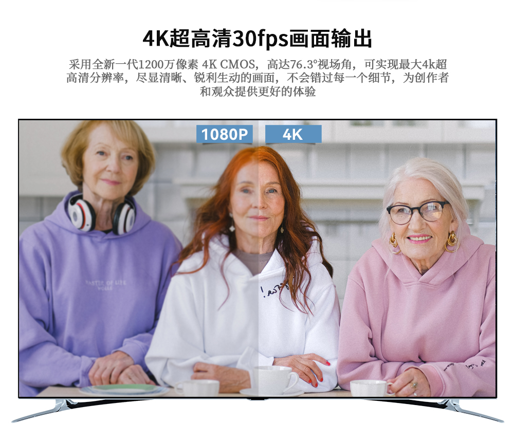 采用全新一代1200萬像素 4K CMOS,高達76.3°視場角,可實現最大4k超高清分辨率,盡顯清晰、銳利生動的畫面,不會錯過每一個細節。