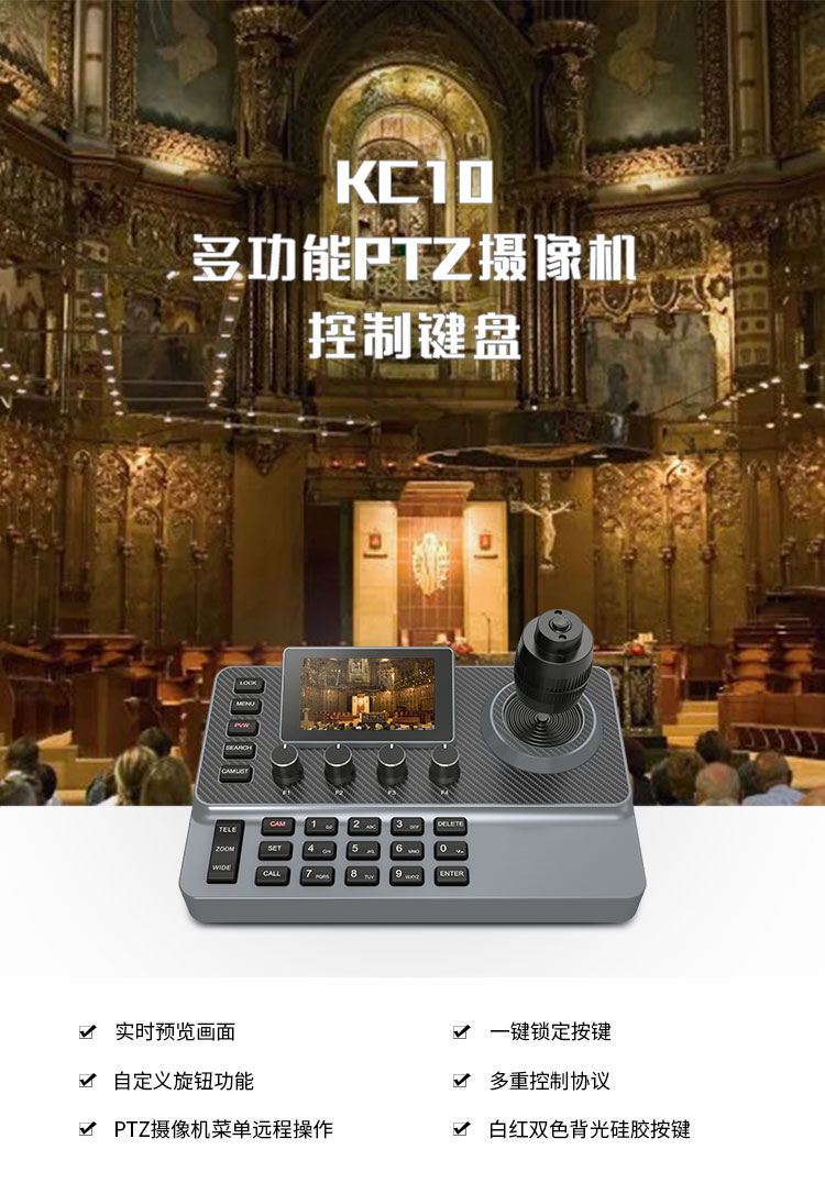 搖桿 | 四維精準搖桿,支持PTZ控制,頂部HOME按鍵 |