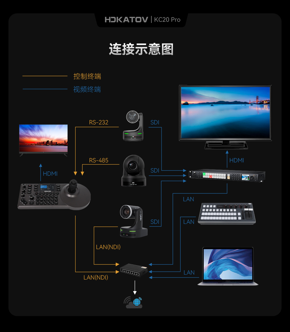 HDKATOV 品牌 > 控制鍵盤 > KC20Pro 多功能PTZ攝像機控制鍵盤
