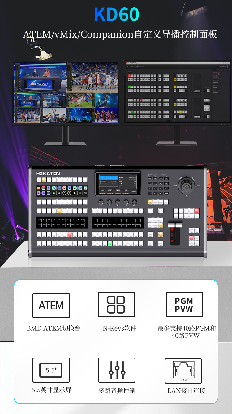 HDKATOV 品牌 > 控制面板 > KD60 ATEM/vMix/Companion自定義導播控制面板